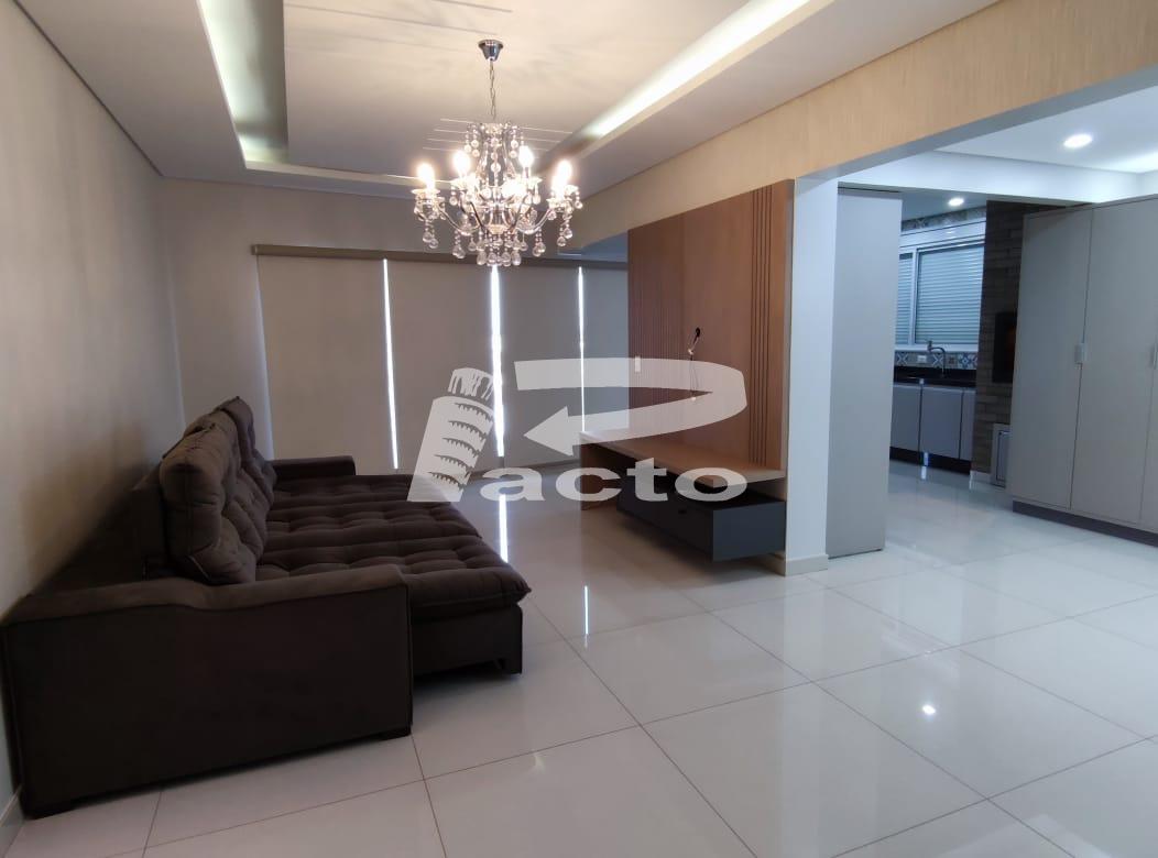 02 quartos e 01 suíte com teto rebaixado e sancas de led, cozinha planejada com forno, microondas e área de festa unificada, sala de estar e sala de estar com teto rebaixado em gesso e sancas de led, lavabo, banheiro social, área de serviço com lavanderia, aquecimento a gás.
